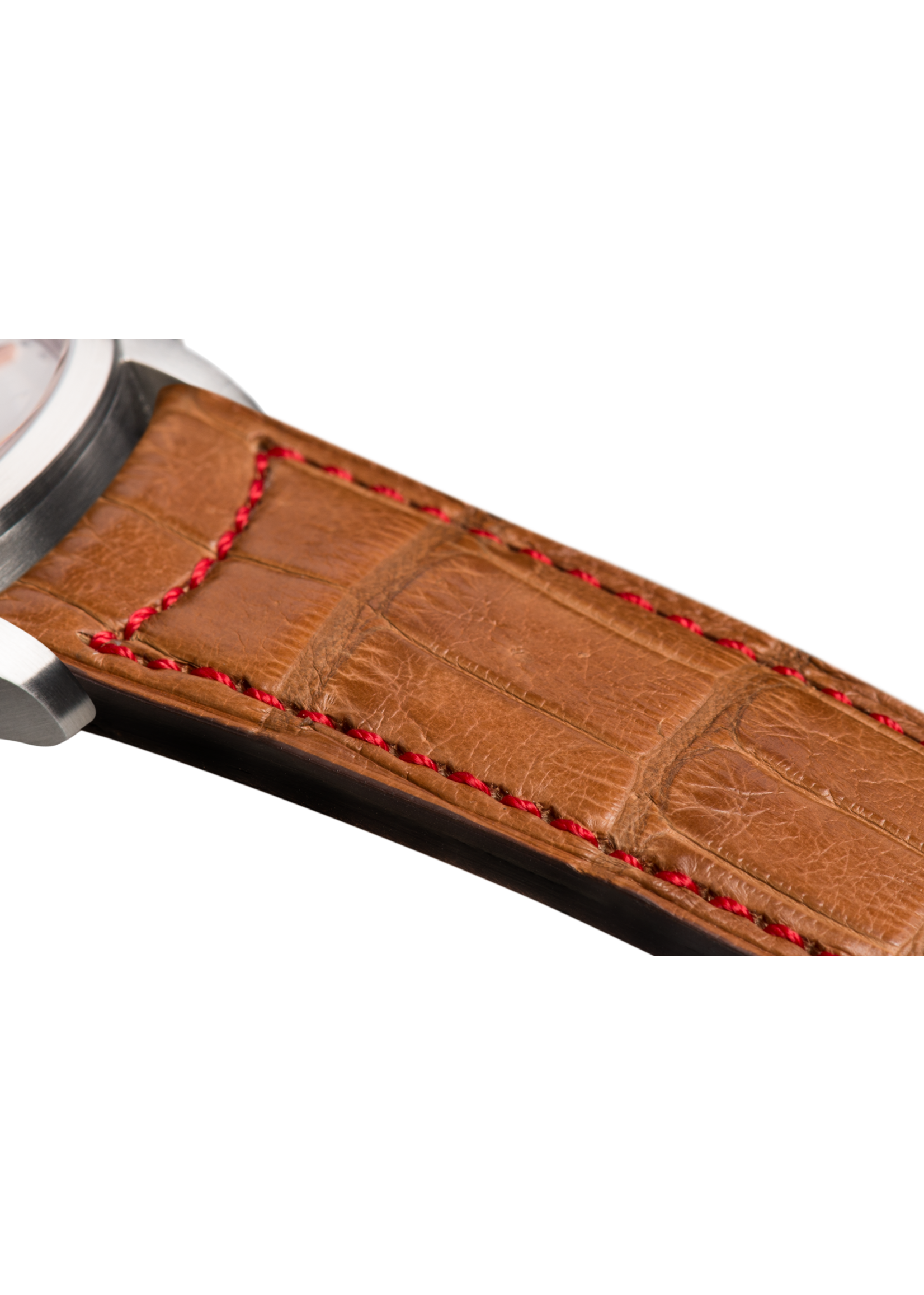 Ce bracelet en alligator est fabriqué à la main en Belgique. Le cuir d'alligator crée un look sophistiqué et son design donne à la montre une touche vraiment élégante. Facile à porter avec notre boucle déployante dotée d'une gravure du logo Raid